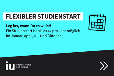 Der virtuelle Campus der IU Duales Studium bietet Dir maximale Flexibilität: Alle Lehrveranstaltungen und auch Prüfungen finden virtuell statt – und das mit einer strukturierten Woche. Gemeinsam wirst Du mit Kommilitonen lernen und musst nicht auf ein Campusfeeling verzichten. Den Praxisteil Deines dualen Studiums absolvierst Du komplett ortsunabhängig – bei einem Unternehmen in Deiner Wunsch-Region.